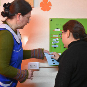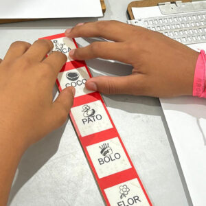 Nesta galeria se apresentam recursos individualizados que tornam possíveis diferentes modos de exploração e aprendizagem: contos adaptados para o reconhecimento tátil, apoios tecnológicos que ampliam as imagens, materiais analógicos que facilitam o acesso digital e o uso de máquinas Braille.