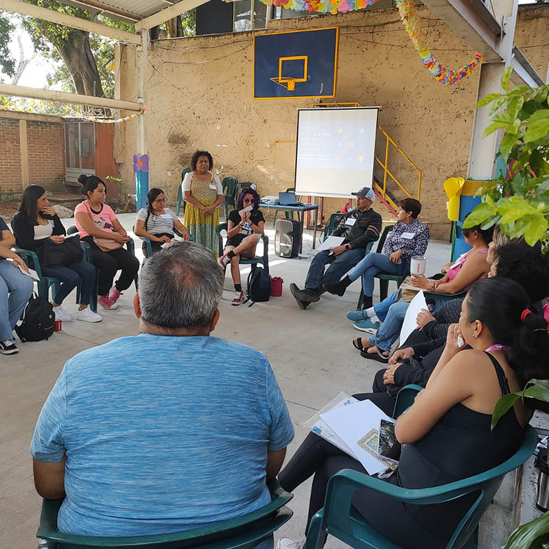 Através de processos de formação e acompanhamento, busca-se fortalecer a liderança de mães e pais, promovendo sua capacidade para identificar e eliminar as barreiras que dificultam a participação e o aprendizado de suas filhas e filhos.