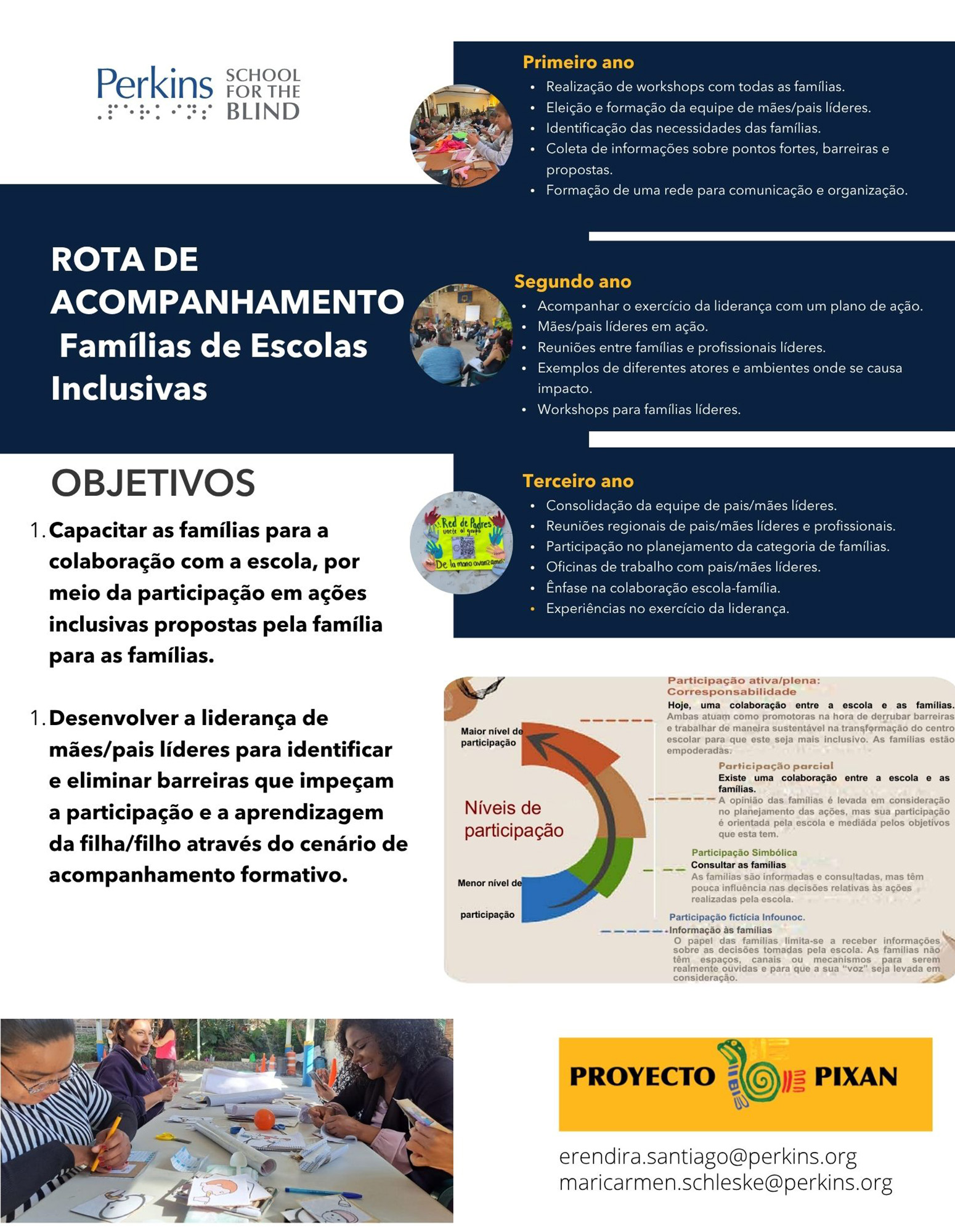As imagens mostram um processo no qual as famílias se tornam um elemento de impulso e pressão para a mudança. Por meio da formação, da sensibilização e da promoção da liderança, são promovidos espaços educacionais cada vez mais inclusivos.