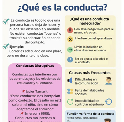 Este recurso convida a repensar a conduta como uma forma de comunicação. Compreender que cada comportamento expressa uma necessidade, uma emoção ou uma intenção nos permite acompanhar melhor cada pessoa, identificando apoios e estratégias que favoreçam seu bem-estar e participação.